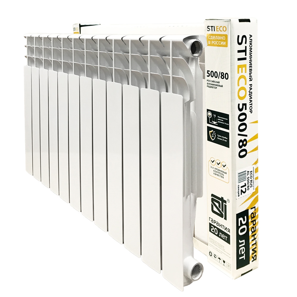 Алюминиевый литой радиатор отопления STI ECO RUS AL - современный отопительный прибор, отвечающий европейским и российским стандартам. Радиатор предназначен для использования в закрытых отопительных системах; жилых, общественных и промышленных зданий, индивидуальных домов, коттеджей, садовых домиков, гаражей и т.д. В качестве теплоносителя может использоваться вода и незамерзающие жидкости с уровнем PH от 8,3 до 9,5.