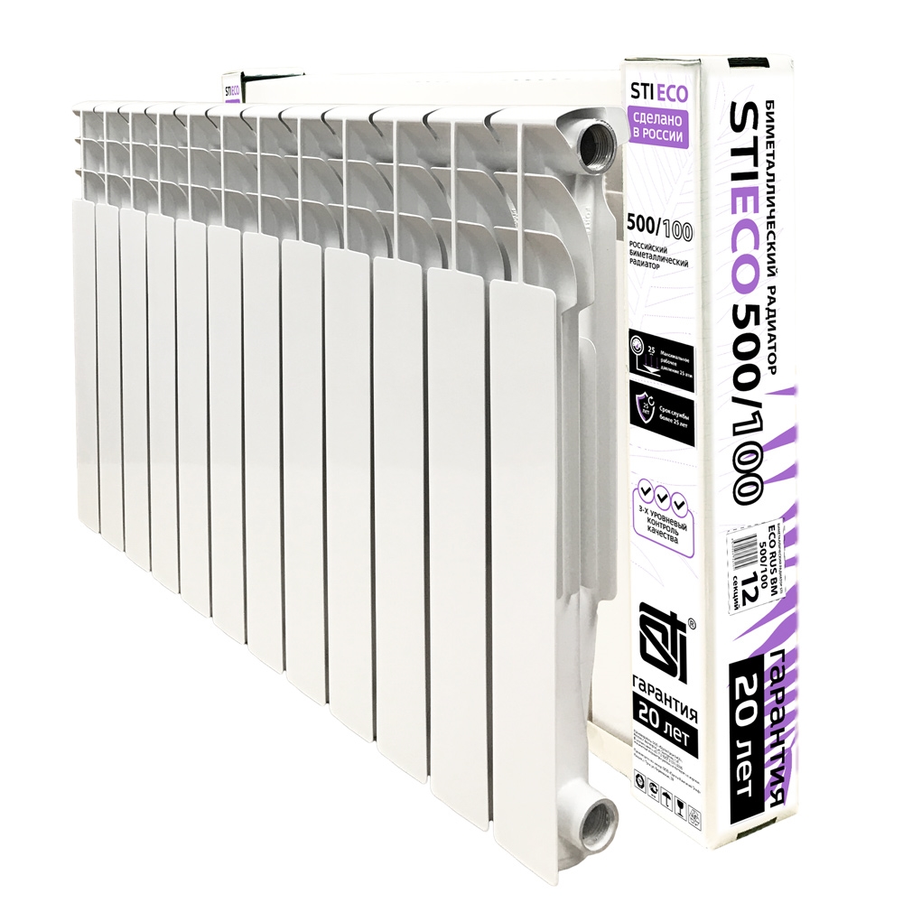 Биметаллические секционные радиаторы центрального отопления STI ECO RUS BM предназначены для эксплуатации в индивидуальных системах и сетях центрального отопления открытого и закрытого типа жилых и административных зданий.