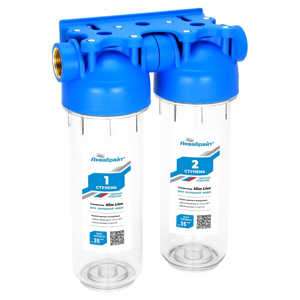 Фильтр прозрачный 2 ступени АКВАБРАЙТ АБФ-2 SL10", латунь 1/2" (кронштейн, ключ)