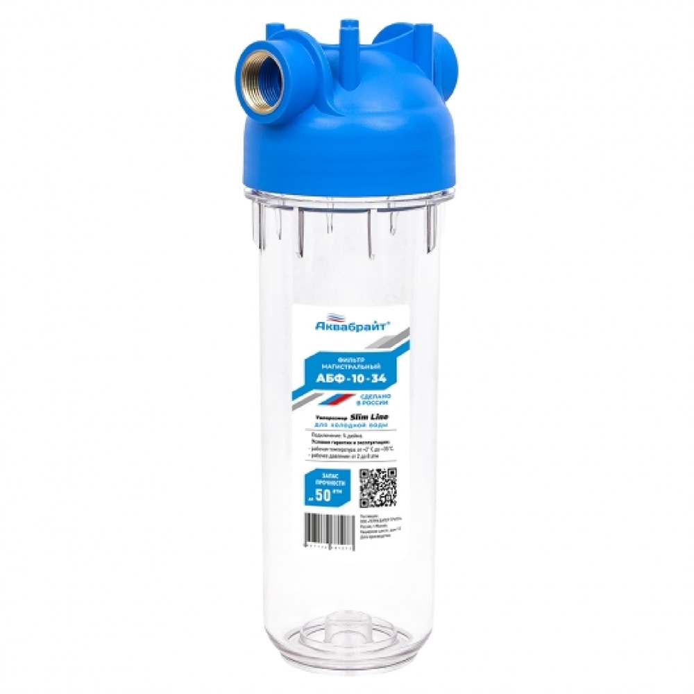Фильтр прозрачный АКВАБРАЙТ АБФ-10-34 SL10", латунь 3/4" (кронштейн, ключ)