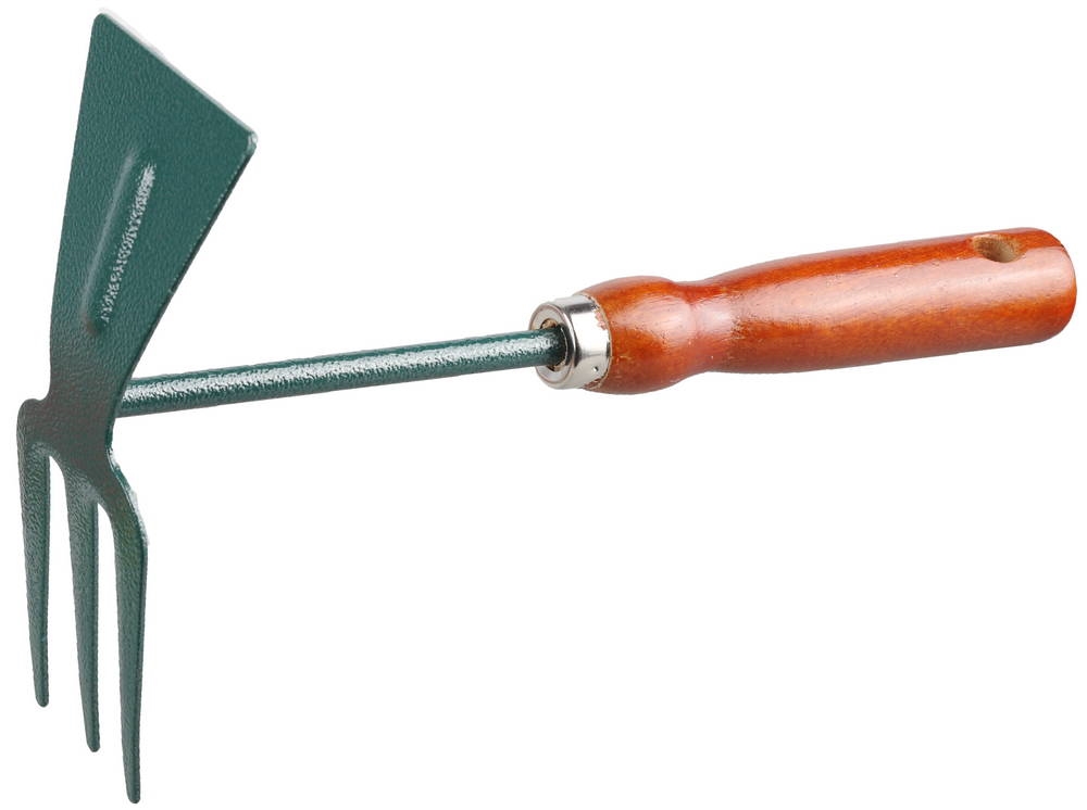 Применяется для прополки растений и рыхления почвы. Зубцы служат для разбивки комьев и разравнивания грунта.