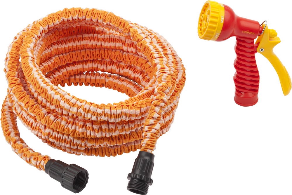 Высококачественные, профессиональные, растягивающиеся шланги GRINDA устойчивы к перегибам, защищены от ультрафиолетовых лучей и имеют высокую стойкость к разрывам. Не содержат вредных для окружающей среды тяжёлых металлов. Полный набор - многофункциональный пистолет, коннекторы для подключения, шланг - для осуществления полива. Надежные и долгослужащие шланги.