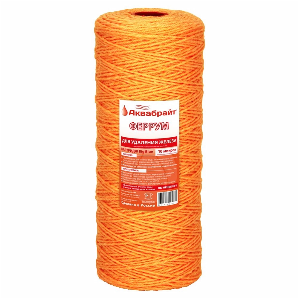 Картридж АКВАБРАЙТ веревочн. Феррум-10 BB10" 10 мкм. МЕХАН./ЖЕЛЕЗО сертифицирован производителем Аквабрайт, передача сертификатов осуществляется в момент отгрузки товара после обращения покупателя.