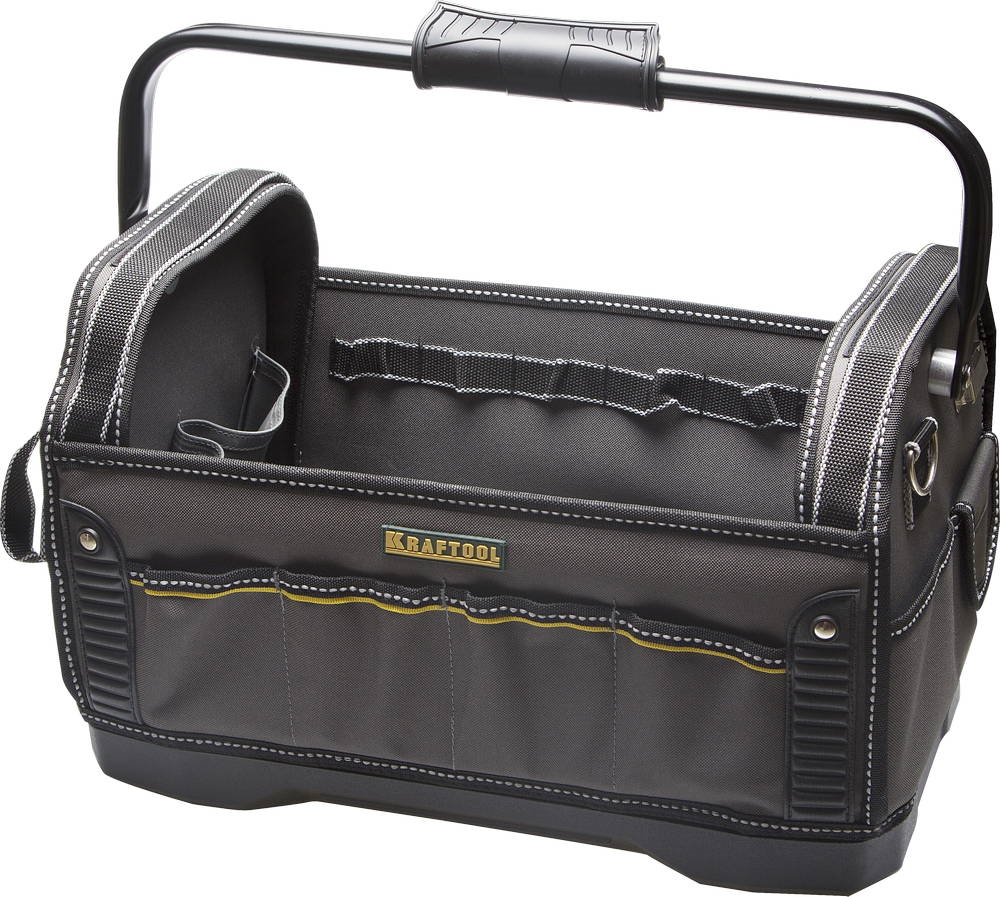 KRAFTOOL 46 см, 8 петель-держателей, жесткое пластиковое дно, каркасная сумка для инструментов с 20 карманами (38741)