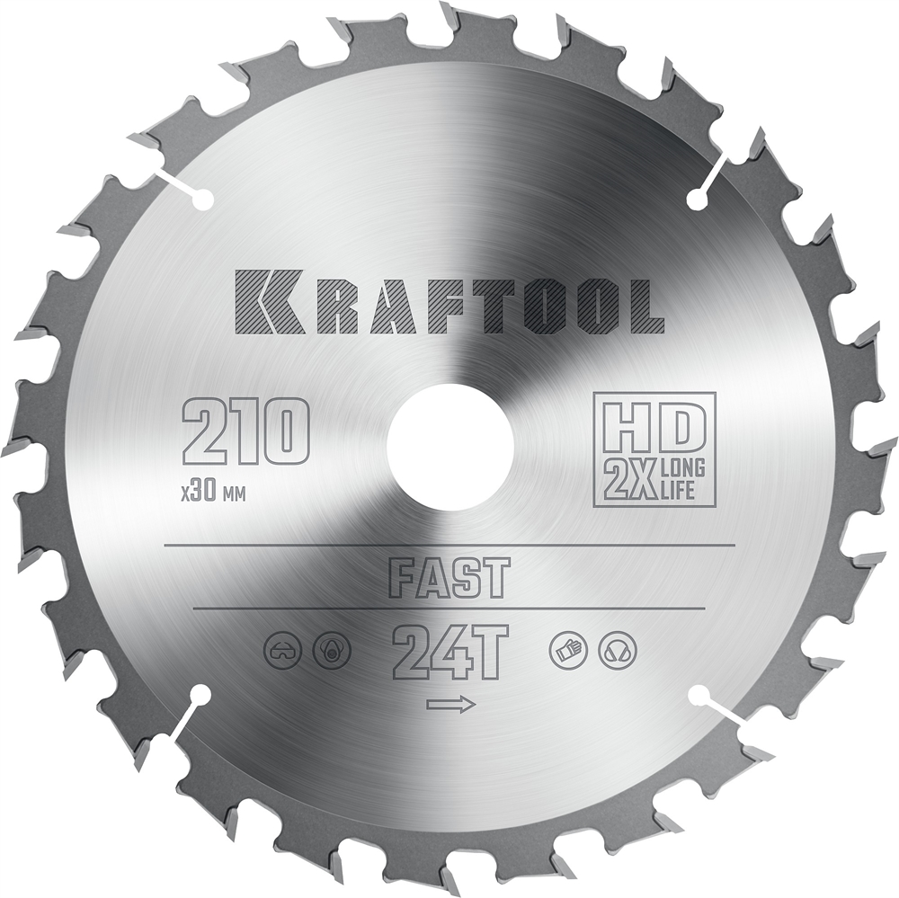 KRAFTOOL Fast, 210 х 30 мм, 24Т, пильный диск по дереву (36950-210-30)