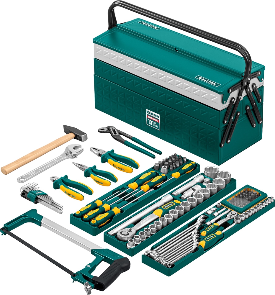 KRAFTOOL GRAND-131, 131 предм., (1/2″+1/4″), универсальный набор инструмента (27978-H131)