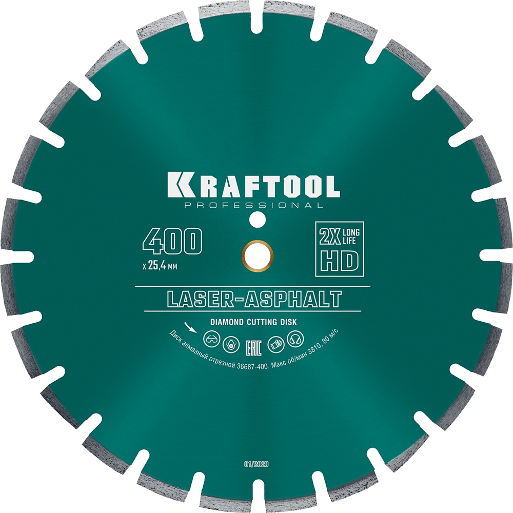 KRAFTOOL Laser-Asphalt, 400 мм, (25.4/20 мм, 10 х 3.4 мм), сегментный алмазный диск (36687-400)