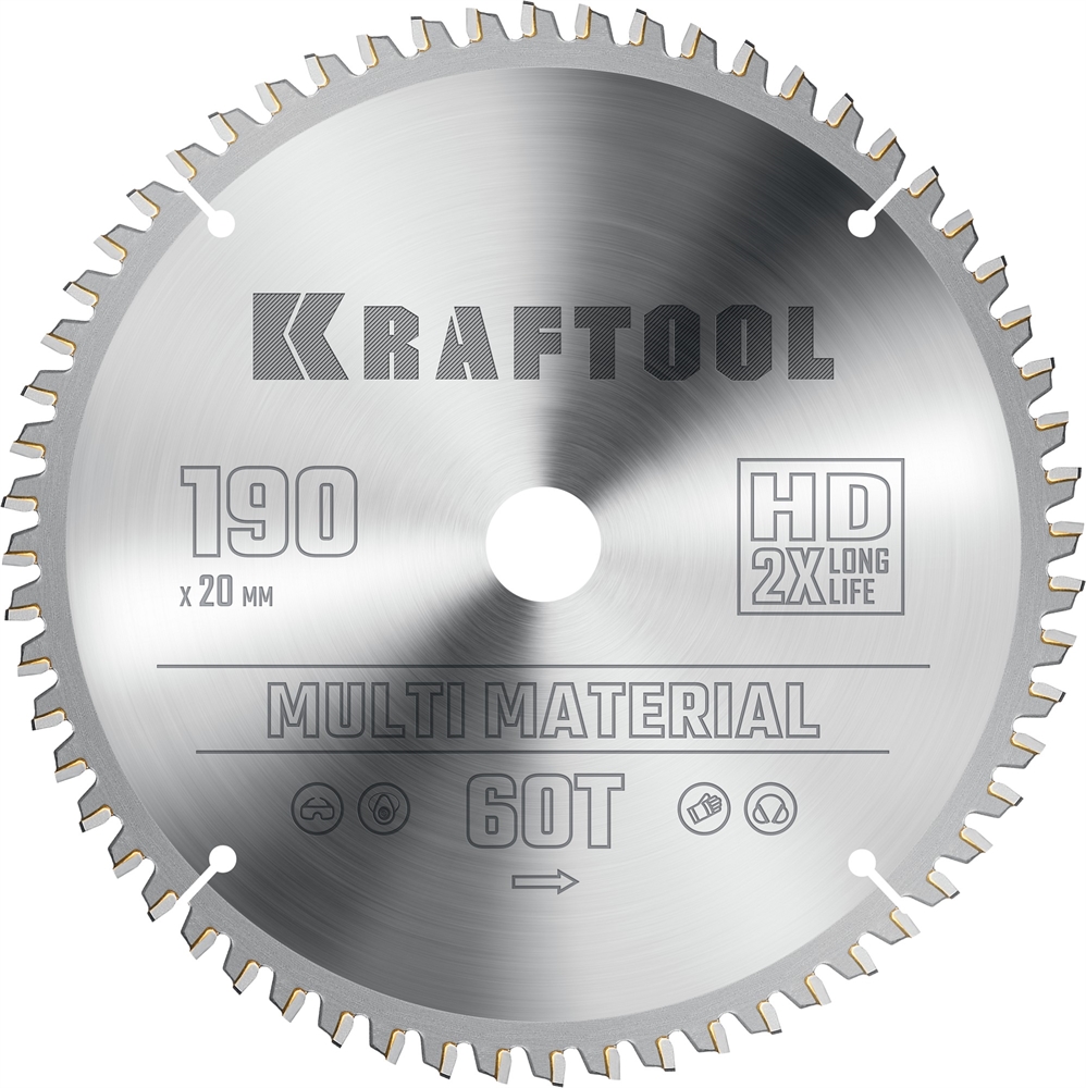 KRAFTOOL Multi Material, 190 х 20 мм, 60Т, пильный диск по алюминию (36953-190-20)