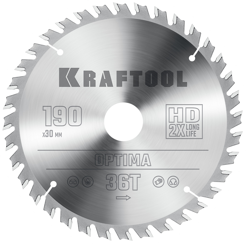 KRAFTOOL Optima, 190 х 30 мм, 36Т, пильный диск по дереву (36951-190-30)