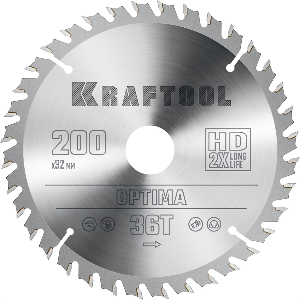KRAFTOOL Optima, 200 х 32 мм, 36Т, пильный диск по дереву (36951-200-32)