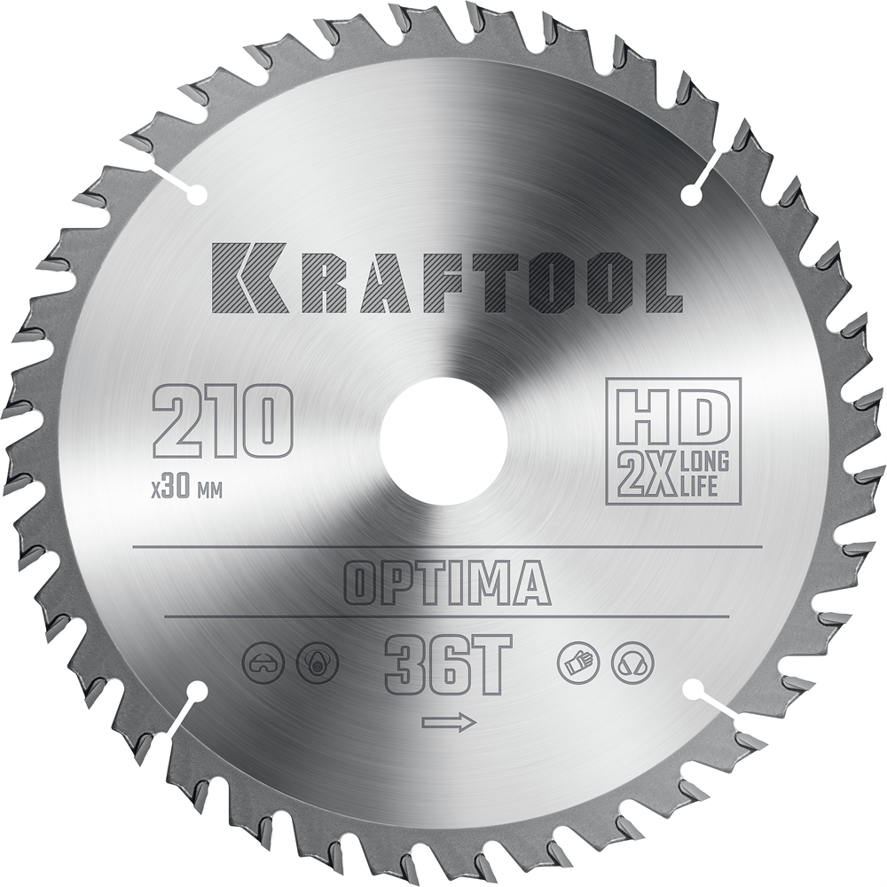KRAFTOOL Optima, 210 х 30 мм, 36Т, пильный диск по дереву (36951-210-30)