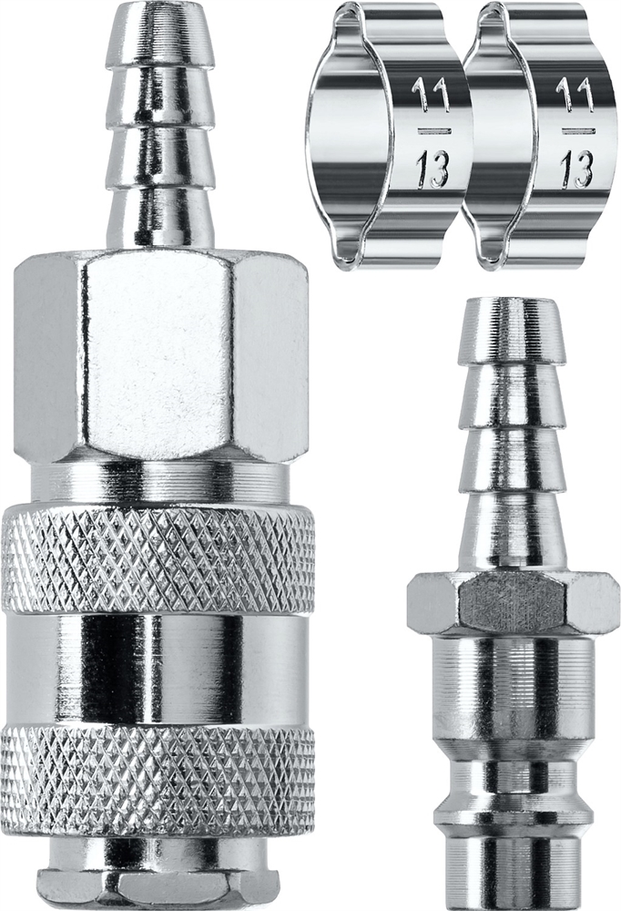 KRAFTOOL (штуцер ″елочка″, 8 мм - рапид муфта) + (рапид штуцер-штуцер ″елочка″, 8 мм) + (обжимные хомуты 2 шт), набор (06599-08-H)