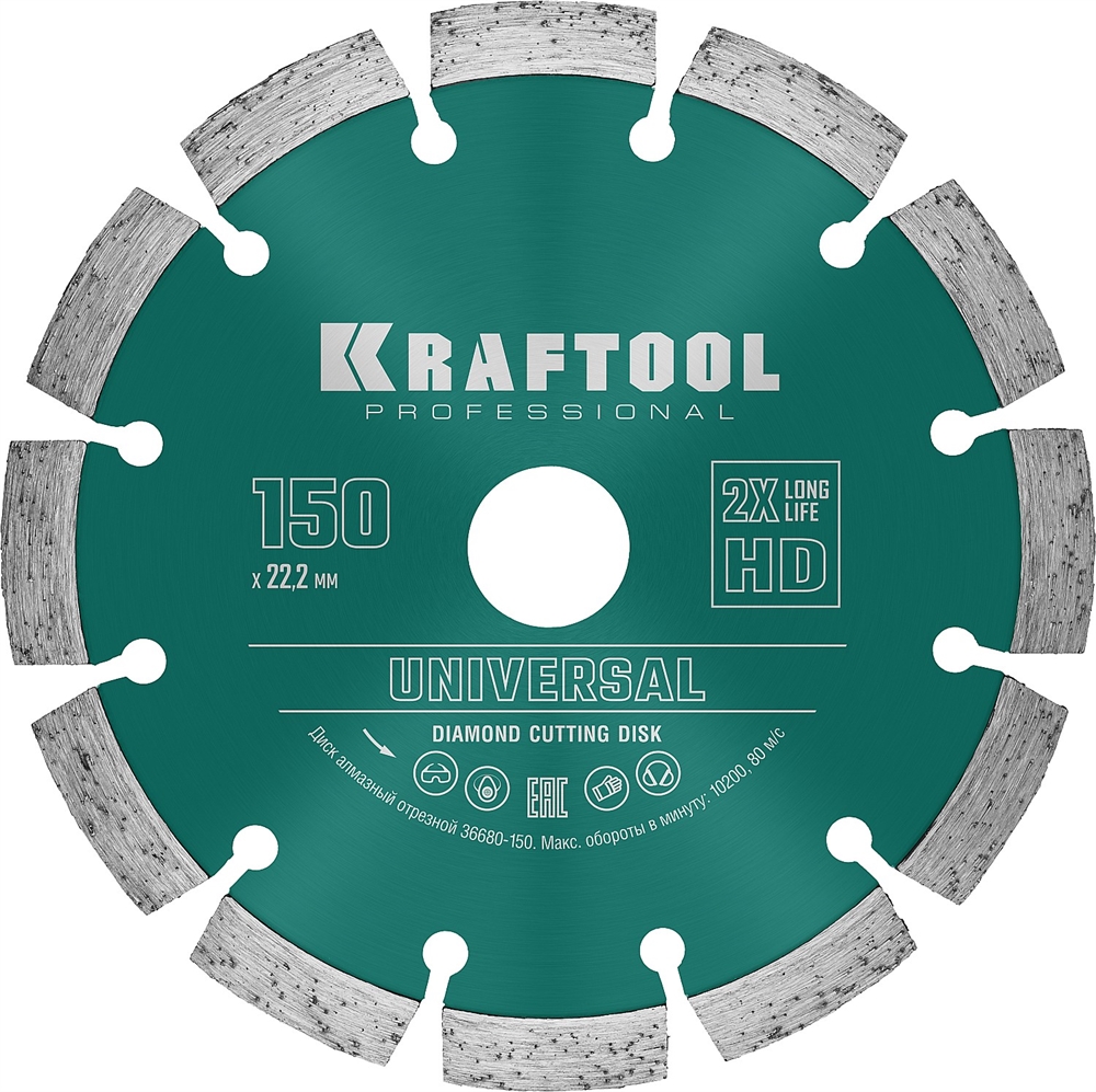 KRAFTOOL Universal, 150 мм, (22.2 мм, 10 х 2.4мм), сегментный алмазный диск (36680-150)