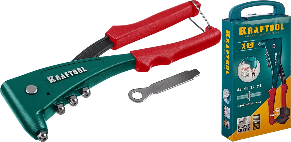 KRAFTOOL X-5F, 2.4 - 4.8 мм, удержание заклепки, литой заклепочник в кейсе (31173-H6) сертифицирован производителем Kraftool, передача сертификатов осуществляется в момент отгрузки товара после обращения покупателя.
