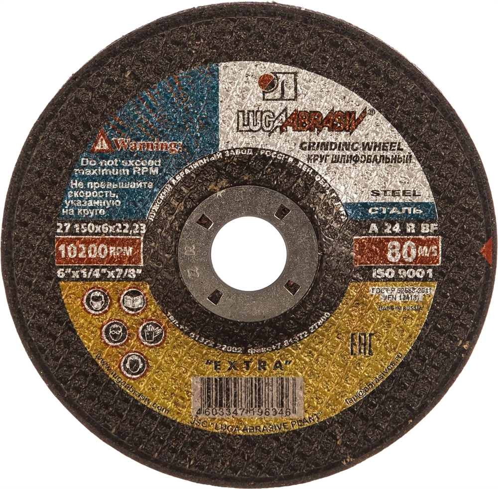 ЛУГА 150 х 6 х 22.2 мм, для УШМ, круг шлифовальный по металлу (3650-150-06) сертифицирован производителем ЛУГА, передача сертификатов осуществляется в момент отгрузки товара после обращения покупателя.