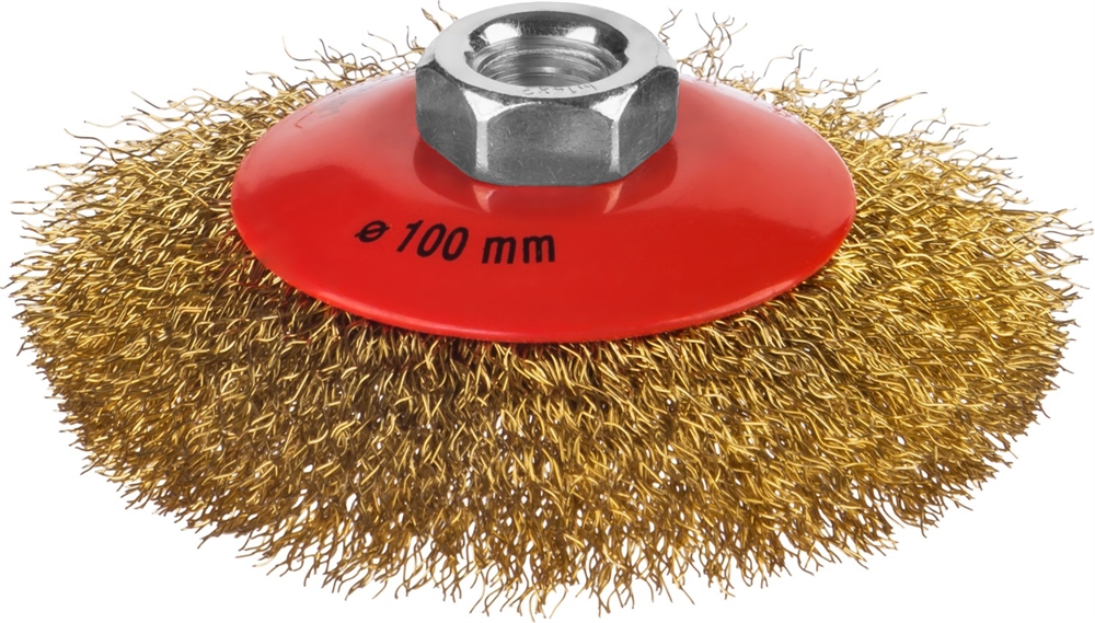 MIRAX 100 мм, витая стальная латунированная проволока 0.3 мм, коническая щетка-крацовка для УШМ (35143-100)