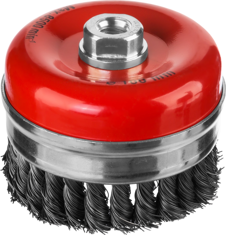 MIRAX 100 мм, жгутированная стальная проволока 0.5 мм, чашечная щетка-крацовка для УШМ (35144-100)