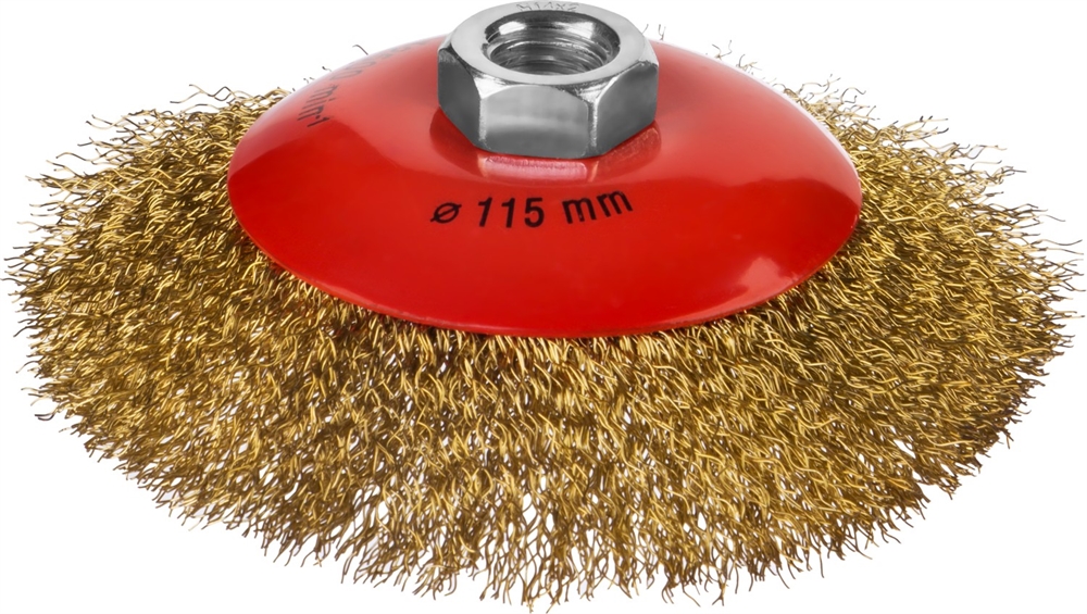 MIRAX 115 мм, витая стальная латунированная проволока 0.3 мм, коническая щетка-крацовка для УШМ (35143-115)