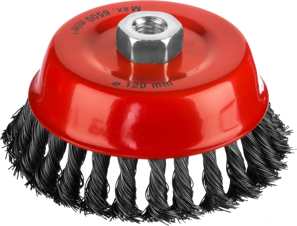 MIRAX 120 мм, жгутированная стальная проволока 0.5 мм, чашечная щетка-крацовка для УШМ (35104-120)