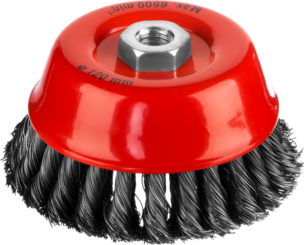 MIRAX 120 мм, жгутированная стальная проволока 0.5 мм, чашечная щетка-крацовка для УШМ (35104-120-2)