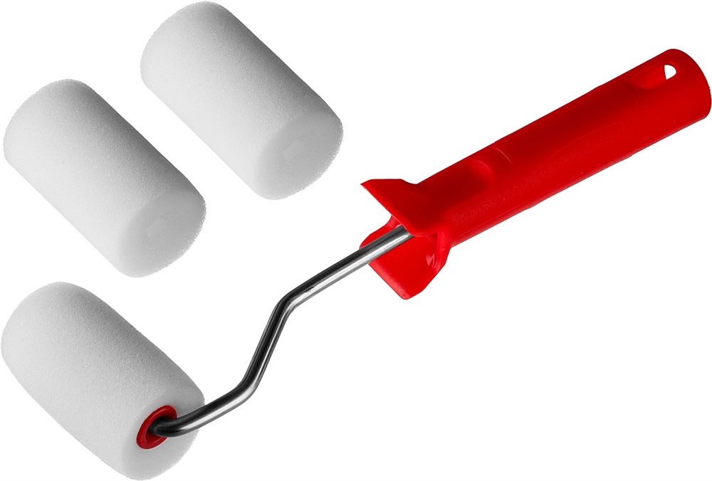 MIRAX ПОРОЛОН, 40 х 65 мм, бюгель 6 мм, 3 шубки + ручка, для водорастворимых ЛКМ, малярный валик в наборе (0363-06)