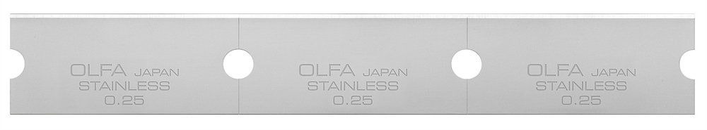 При использовании со скребком OLFA GSR-2 лезвие разделяется на сегменты размером 40 x 18 x 0.25 мм (x 3 сегмента в лезвии).