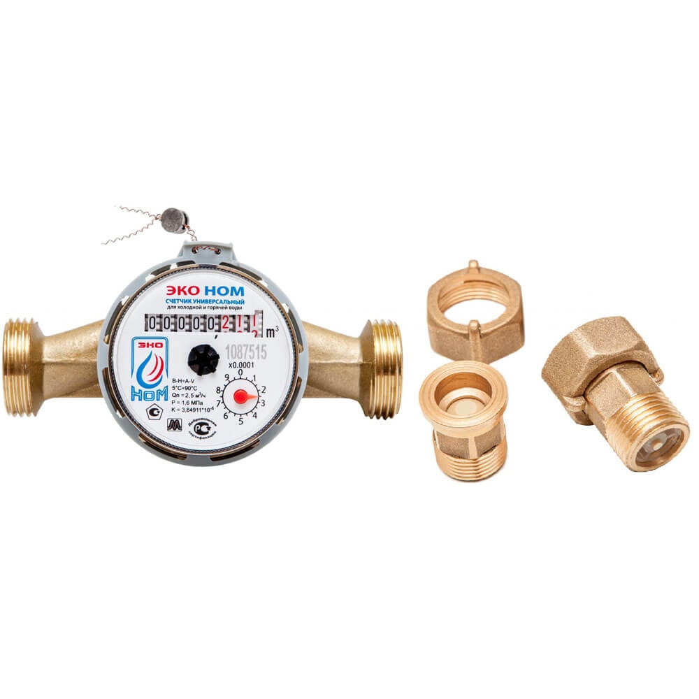 Счетчик воды универс. ЭКО НОМ СВ-20 (130мм, с КМЧ и обрат. клапан.)