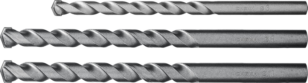 СИБИН 3 шт: d 6-8-10 мм, набор сверл по бетону (29112-H3)