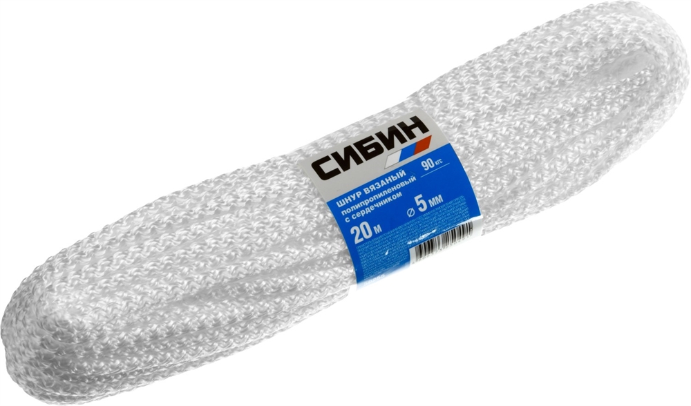 СИБИН 5 мм, 20 м, вязаный, с сердечником, белый, полипропиленовый шнур (50255) сертифицирован производителем СИБИН, передача сертификатов осуществляется в момент отгрузки товара после обращения покупателя.