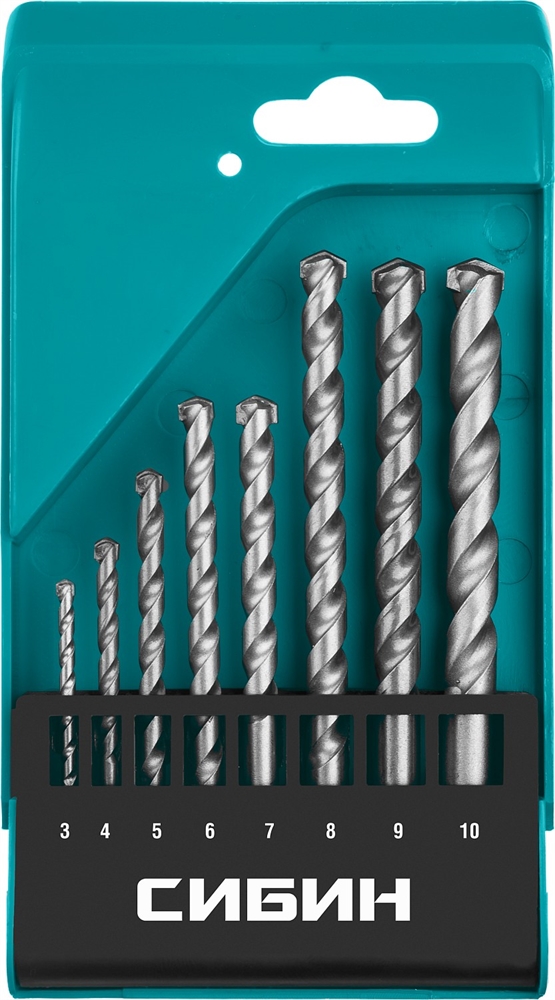 СИБИН 8 шт: d 3-4-5-6-7-8-9-10 мм, набор сверл по бетону (29112-H8)