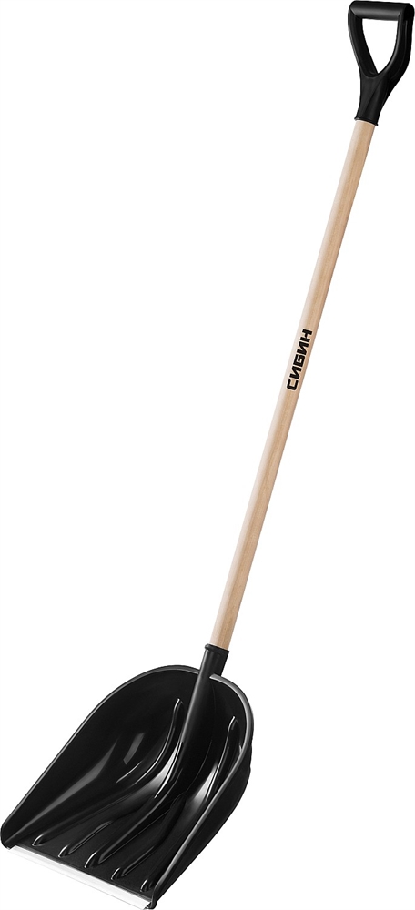 СИБИН ЛПД-460, ширина 460 мм, пластиковая, с алюминиевой планкой, деревянный черенок, V-ручка, снеговая лопата (421843)