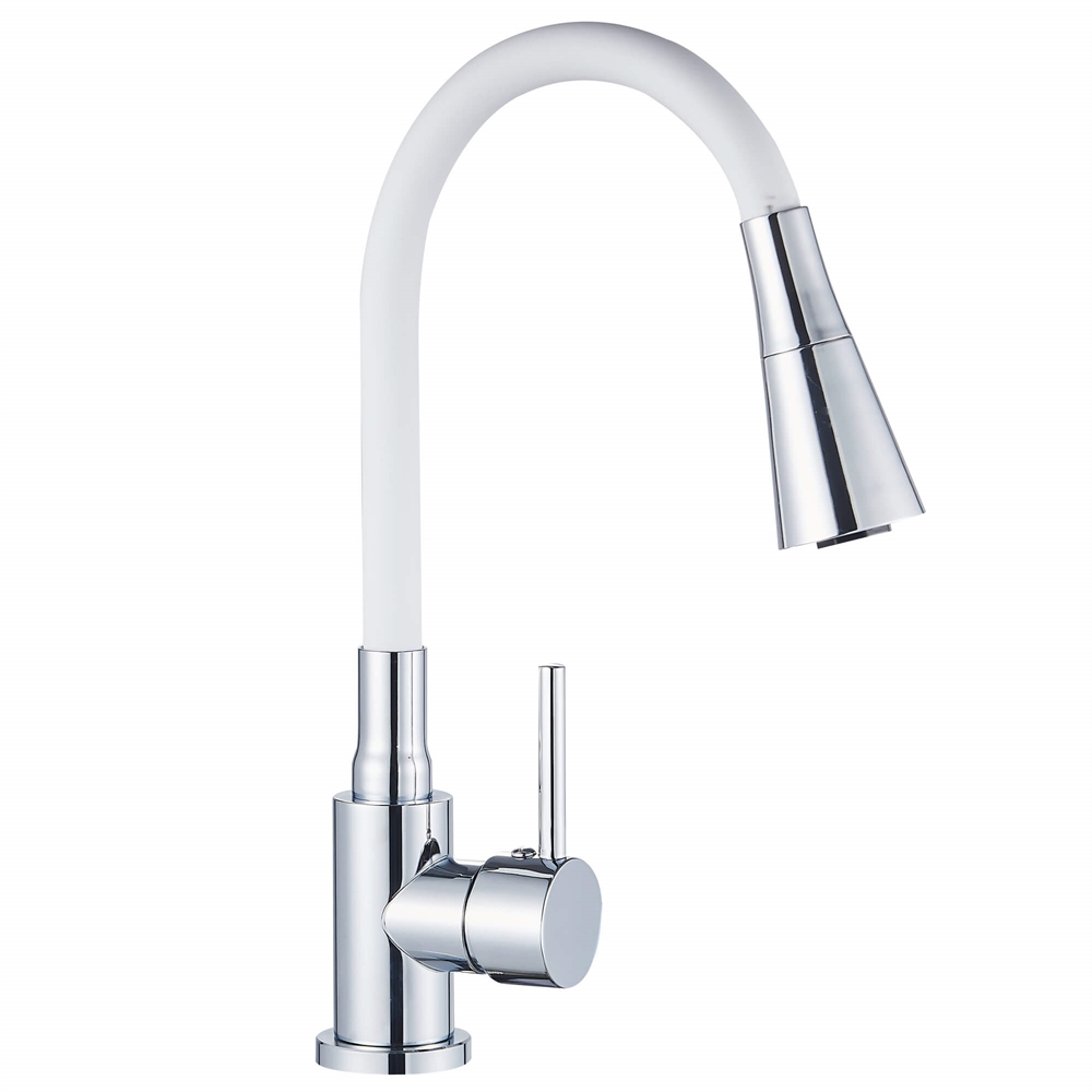 Смеситель для кухни Ligeya L7008 одноручный с белым гибким изливом, 2-х режим. лейка, нерж.