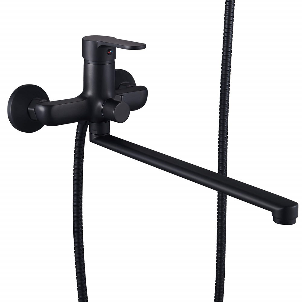 Смеситель для ванны Ligeya L9002B с душем одноручный с длинным изливом черный