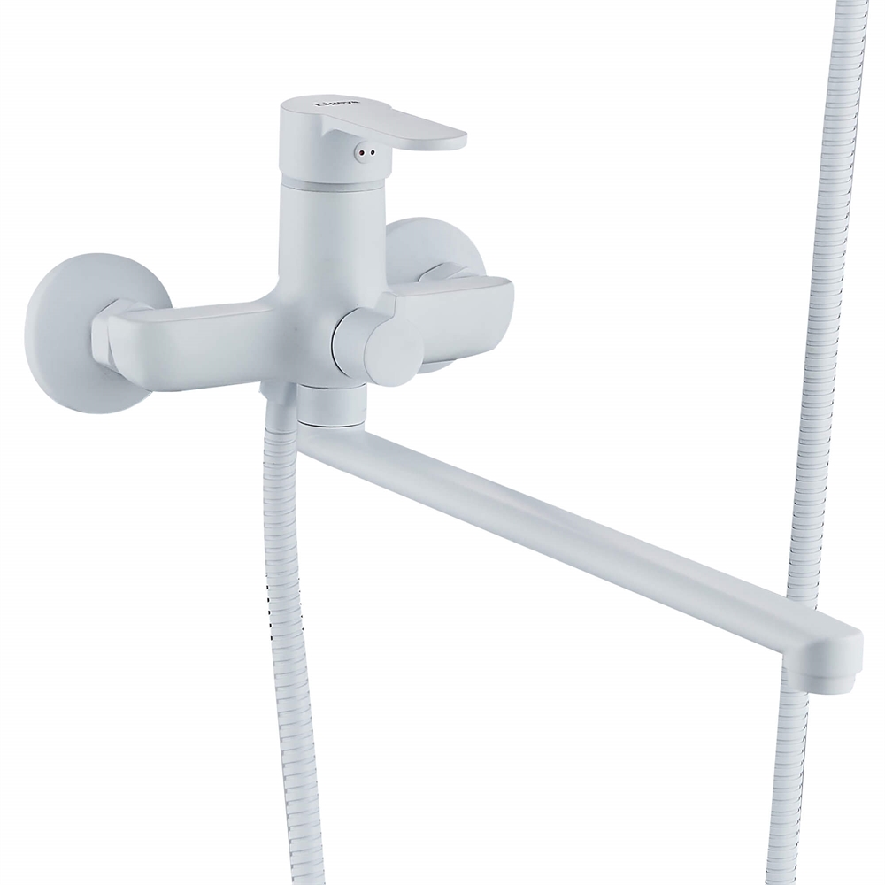 Смеситель для ванны Ligeya L9002W с душем одноручный с длинным изливом белый
