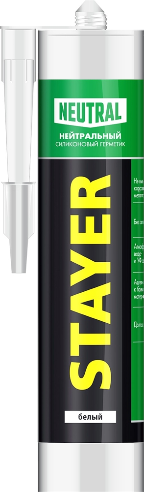 STAYER 260 мл, белый, силиконовый, нейтральный герметик (41217-0) сертифицирован производителем Stayer, передача сертификатов осуществляется в момент отгрузки товара после обращения покупателя.