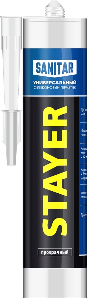 STAYER 260 мл, прозрачный, силиконовый, санитарный герметик (41215-2) сертифицирован производителем Stayer, передача сертификатов осуществляется в момент отгрузки товара после обращения покупателя.
