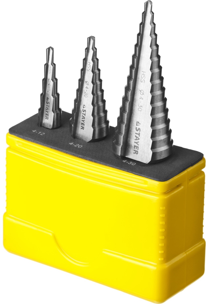 STAYER 3 шт, 4-30 мм, сталь HSS, набор сверл ступенчатых (29660-4-30-H3)