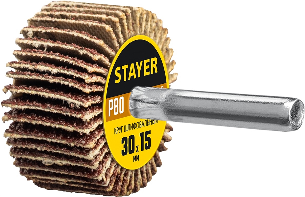 STAYER d 30 x 15 мм, P80, на шпильке d 6 мм, круг шлифовальный лепестковый (36606-080)