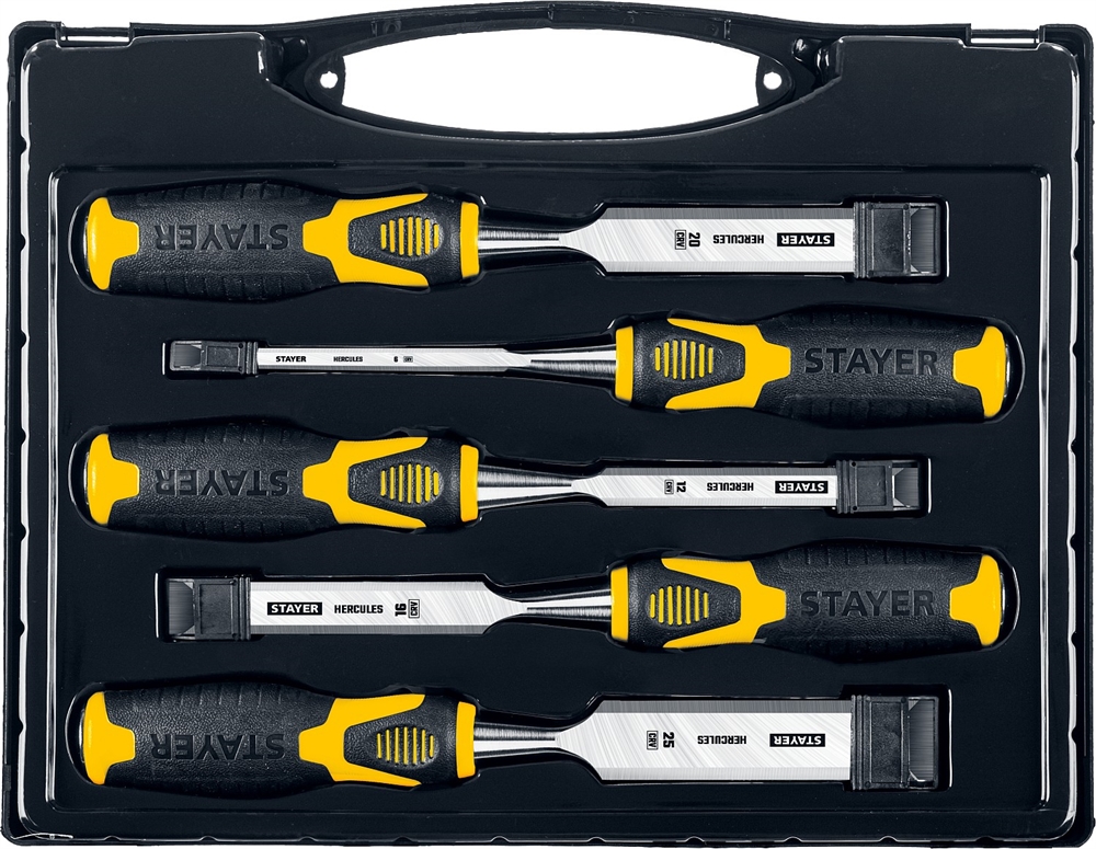 STAYER Hercules, 5 предм., набор стамесок-долот, Professional (18205-H5) сертифицирован производителем Stayer, передача сертификатов осуществляется в момент отгрузки товара после обращения покупателя.