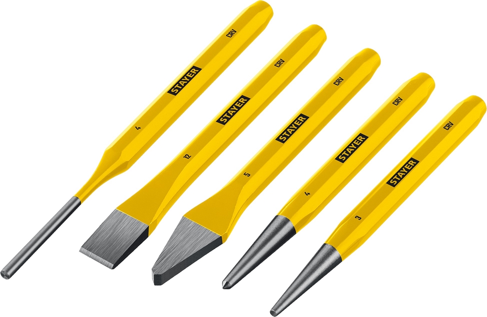 STAYER Hercules, 5 предметов, набор зубил и кернеров в пластиковом держателе, Professional (21077-H5) сертифицирован производителем Stayer, передача сертификатов осуществляется в момент отгрузки товара после обращения покупателя.