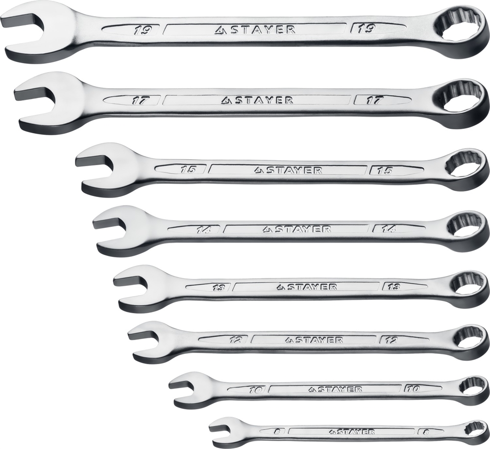 STAYER HERCULES, 8 шт, 8 - 19 мм, набор комбинированных гаечных ключей, Professional (27085-H8) сертифицирован производителем Stayer, передача сертификатов осуществляется в момент отгрузки товара после обращения покупателя.