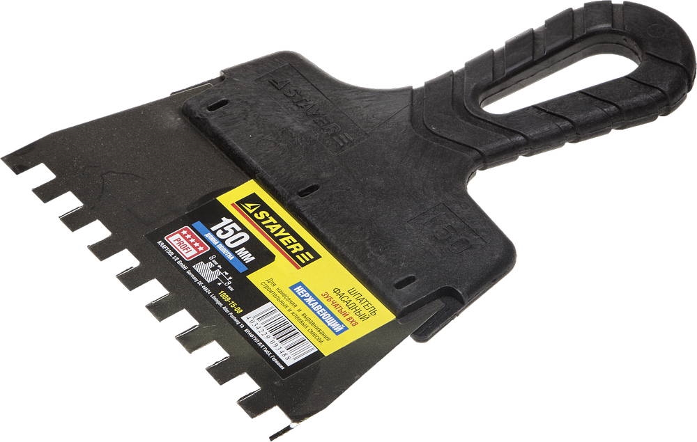 STAYER PROFlat, 150 мм, зуб 8 х 8 мм, пластиковая ручка, зубчатый, нержавеющий, фасадный шпатель, Professional (1009-15-08) сертифицирован производителем Stayer, передача сертификатов осуществляется в момент отгрузки товара после обращения покупателя.
