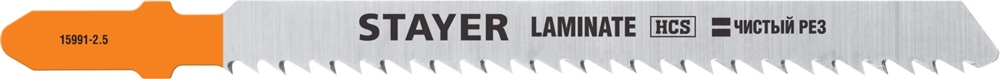 STAYER T101BR, 2 шт, 75 мм / 2.5 мм, T-хвост., HCS сталь, обратный рез по ламинату/фанере, полотна для лобзика, Professional (15991-2.5) сертифицирован производителем Stayer, передача сертификатов осуществляется в момент отгрузки товара после обращения покупателя.