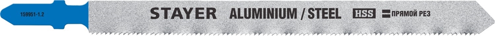 STAYER T318A, 2 шт, 110 мм / 1.2 мм, T-хвост., HSS сталь, по металлу 1-3 мм, по алюмин. профилям до 65 мм, полотна для лобзика (159951-1.2) сертифицирован производителем Stayer, передача сертификатов осуществляется в момент отгрузки товара после обращения покупателя.