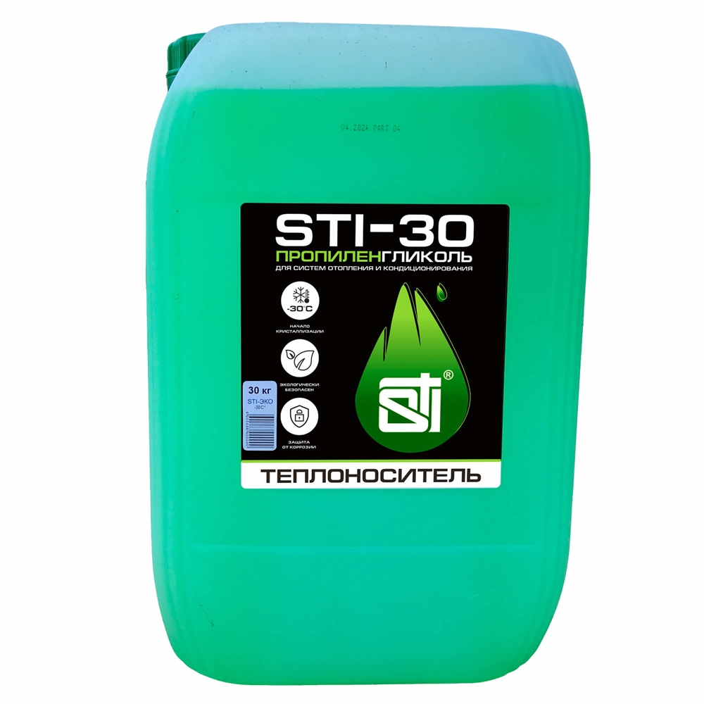 Теплоноситель STI пропиленгликоль (-30°C) 30 кг. сертифицирован производителем , передача сертификатов осуществляется в момент отгрузки товара после обращения покупателя.