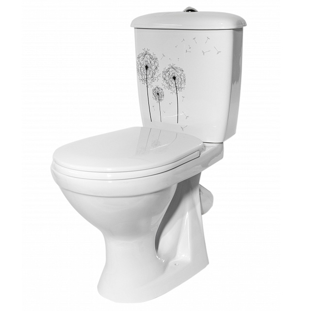 Унитаз-компакт ОК Суперкомпакт Стандарт декор «Одуванчик» (арматура и сиденье, косой выпуск)