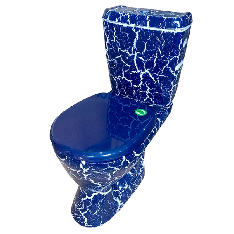 Унитаз-компакт Rosa Рио синий кракелюр (арматура и сиденье, горизонт. выпуск)