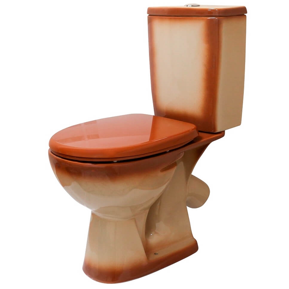 Унитаз-компакт Rosa Уют коричневый декор (арматура и сиденье, косой выпуск)