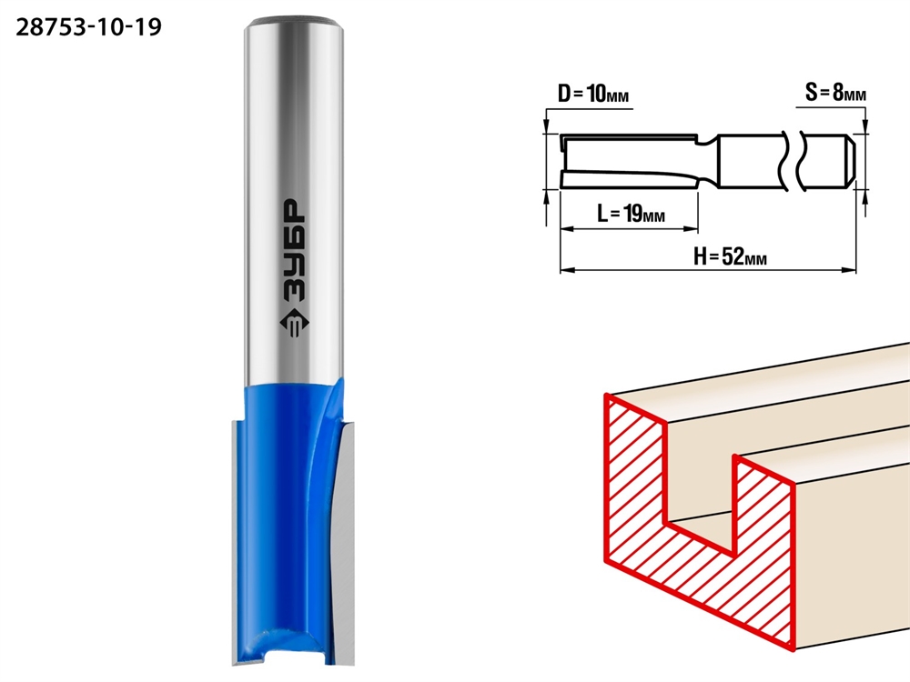 ЗУБР 10 x 19 мм, хвостовик 8 мм, фреза пазовая прямая, Профессионал (28753-10-19)