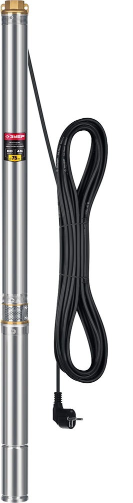 ЗУБР 1000 Вт, 80 м напор, скважинный центробежный насос, корпус из нержавеющей стали (НСЦ-75-80)